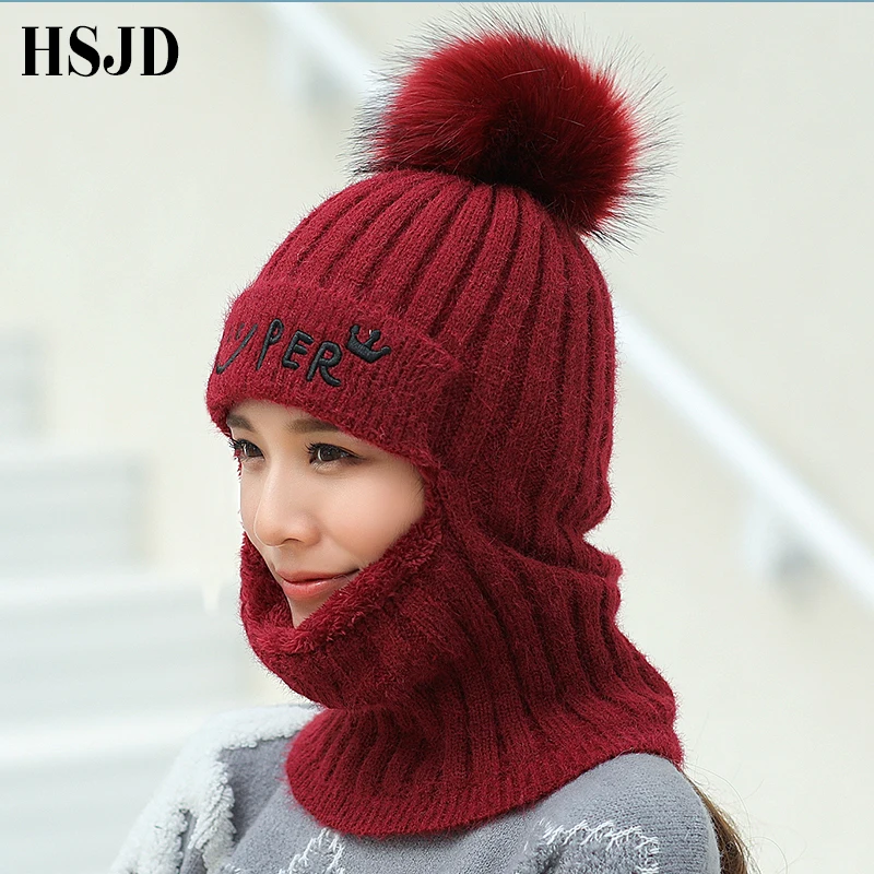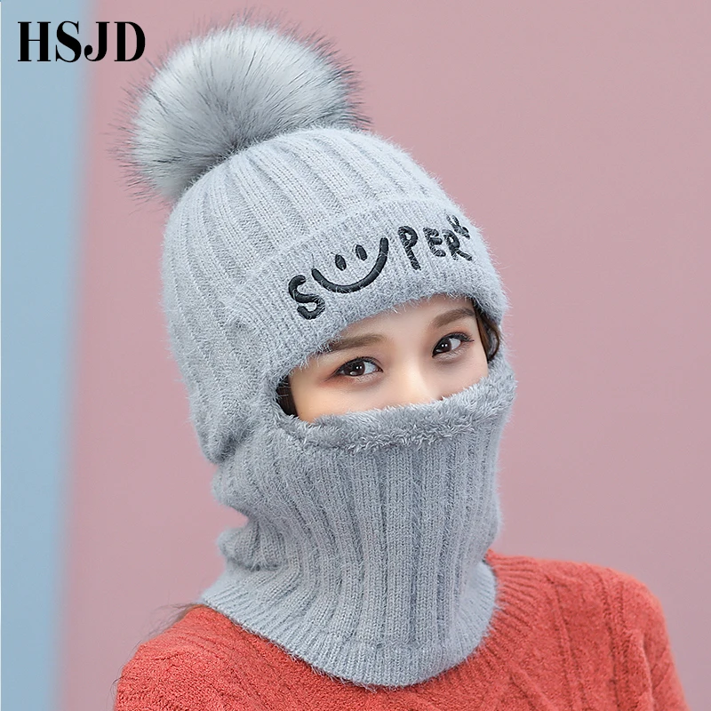 Best New Rabbit Hair Balaclava Knitted Winter Hats For Women Thick Mask Skullies Beanies Smile Caps For