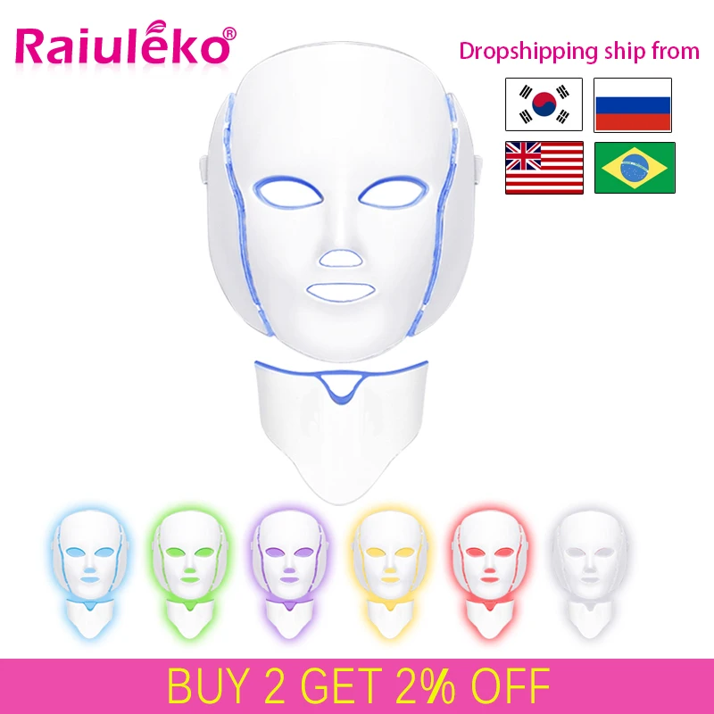 Discount 7 Colors Light LED Facial Mask With Neck Skin Rejuvenation Face Care Treatment Beauty Anti Acne The