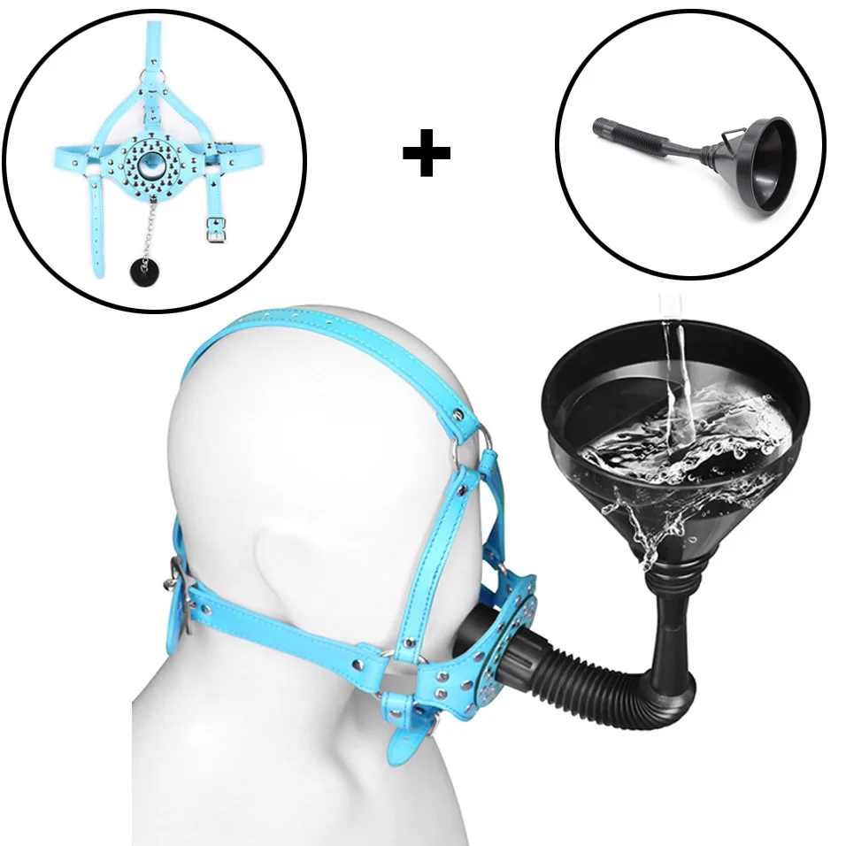 Buy camaTech BDSM Toilet Funnel Open Mouth Gag Mask Hood PU Leather Funnel Oral Enema Drool Plug Gag He