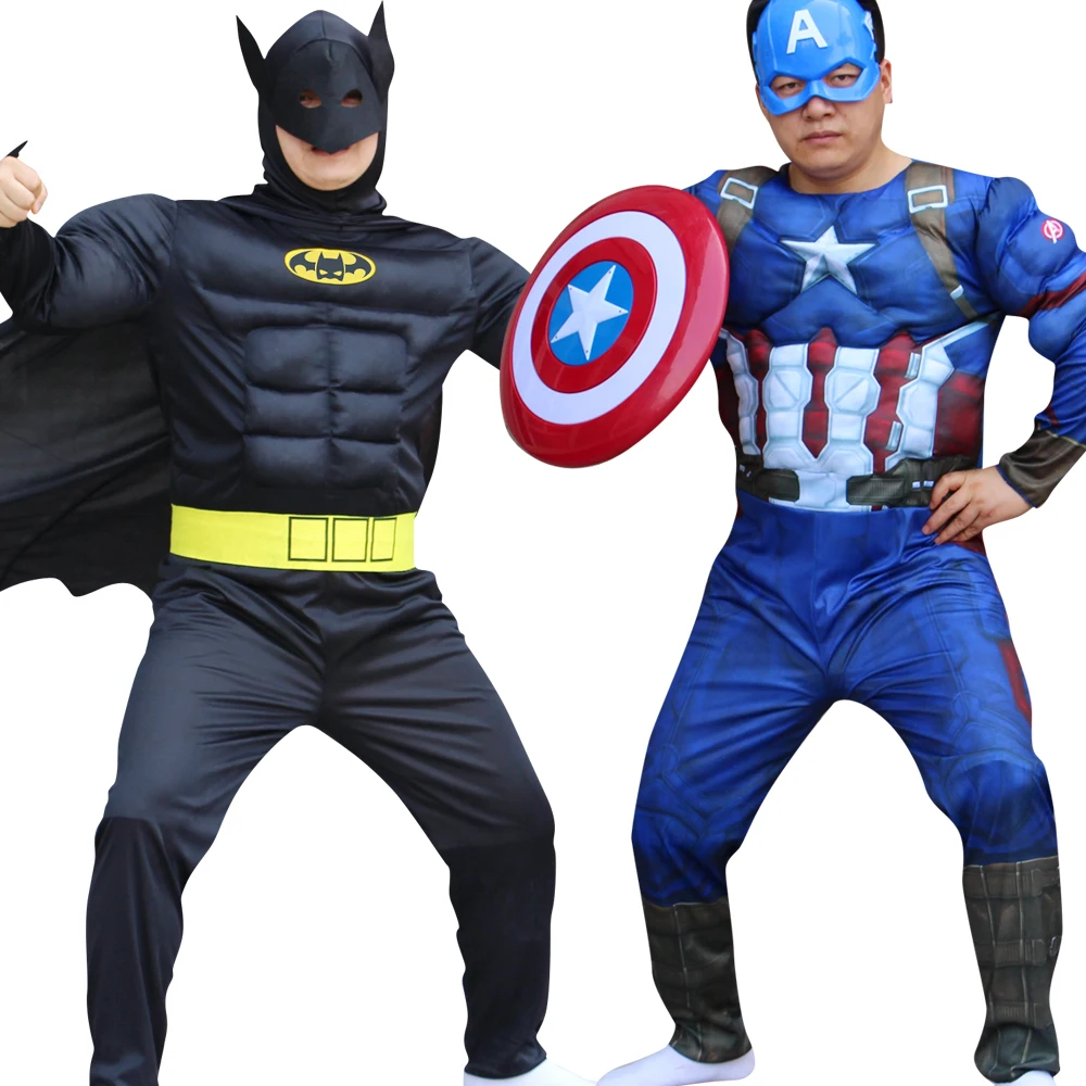 Cheap Cosplay Adult Muscle Hero Costume Hulk Spiderman Steel warrior Batman Superman Captain Americasuper