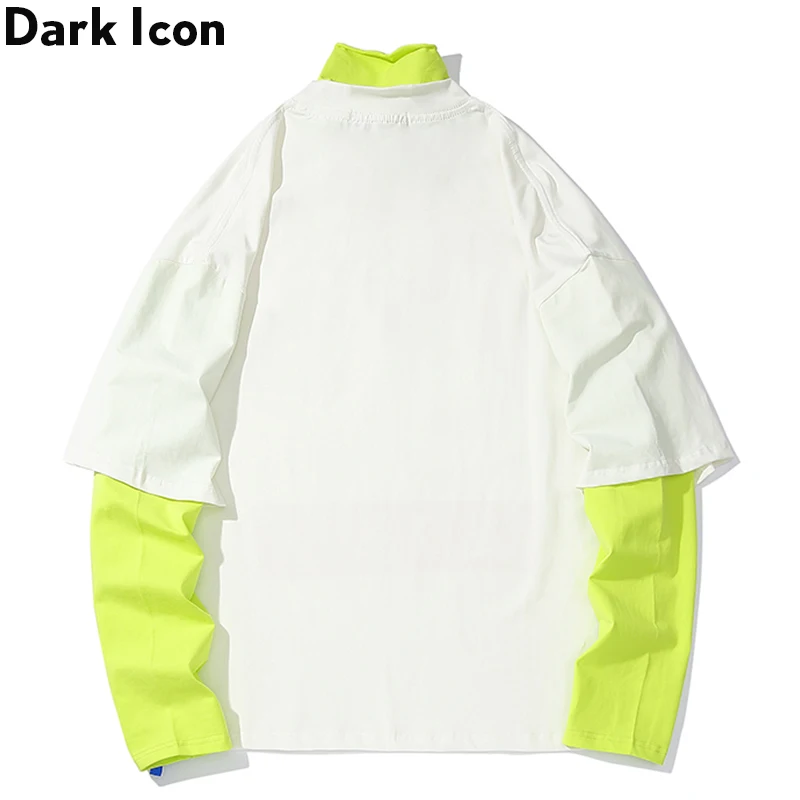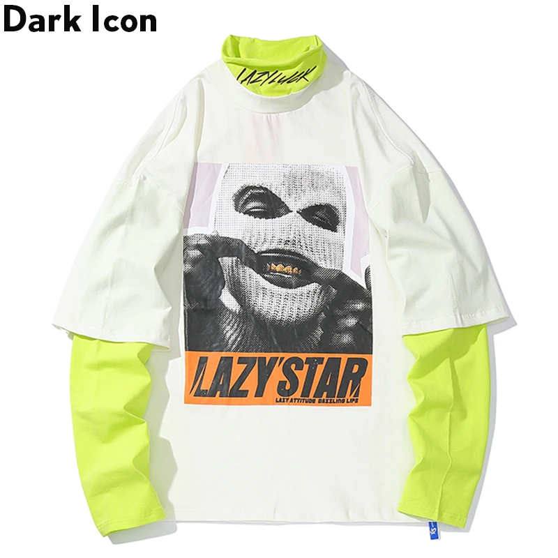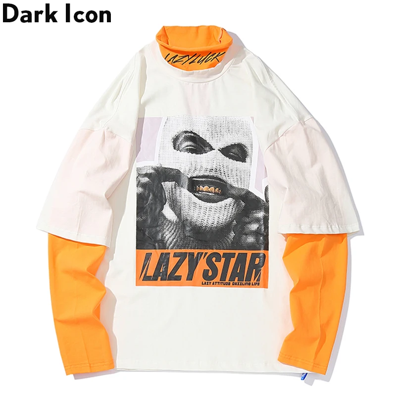 Special Product Dark Icon Masked Man Drop Shoulder Hip Hop T-shirt Long Sleeve Turtle Neck Fake 2pcs Street Men's T