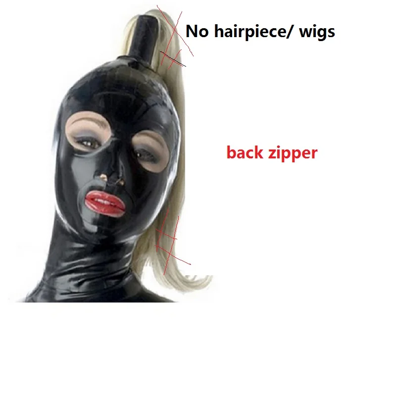 Promo Latex Hood rubber Mask with hairpieces wigs ponytails handmade with back zipper
