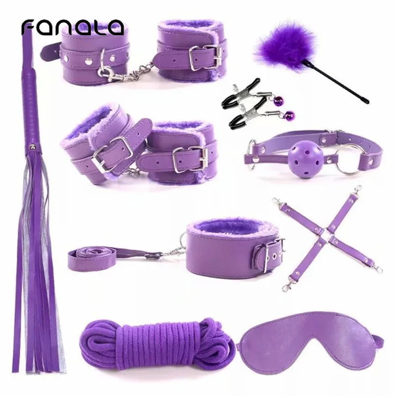 Special 10 Pcs/set BDSM Sex Slave Bondage Set Adult Sex Toys for Couples Women Handcuffs Nipple Clamps Gag