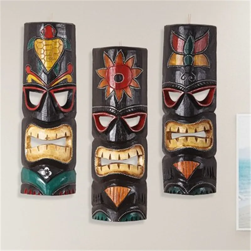 Best Southeast Asian Style Afican Masks Pendant Bali Wood Carving Restaurant Background Wall Decorations