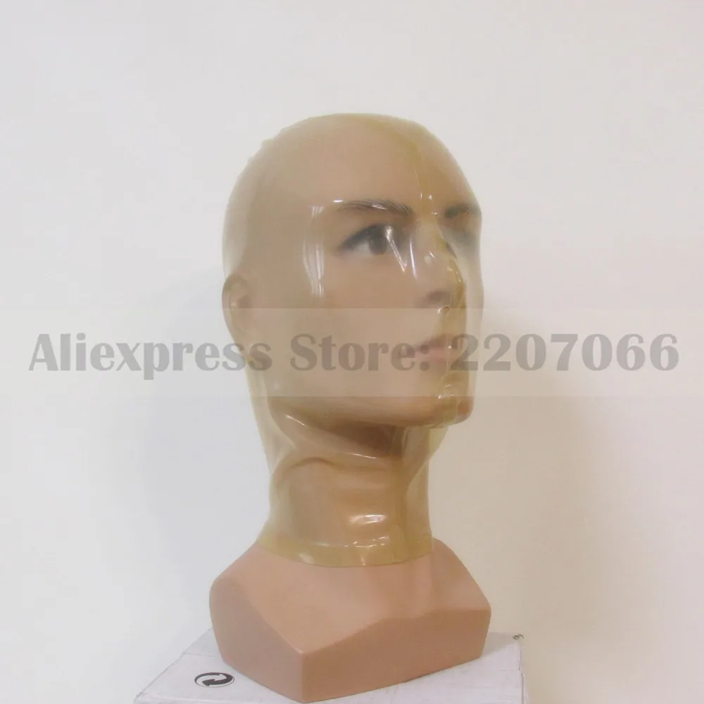Buy Transparent unisex latex rubber hoods mask with nostrils opened handmade back zip hood RLM074