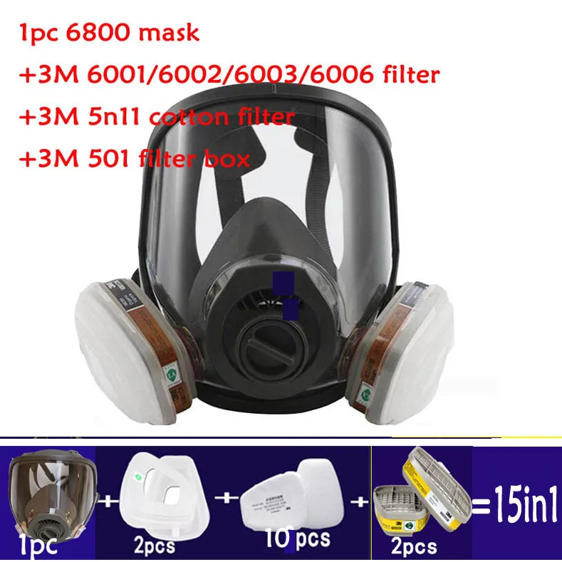 Cheap 15in1 3 interface 6800 mask with 3M 6001/6002/6003/6005filter and 3M 5N11 filter cotton / 3M501 fil