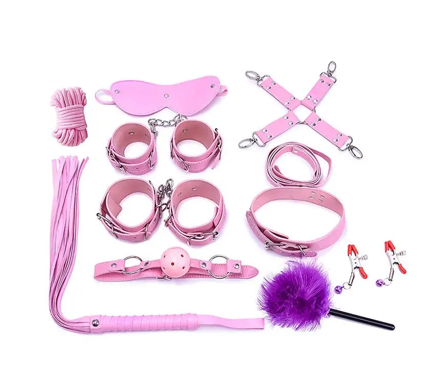 Discount 10pcs Sex Toys for Woman Sexo Bdsm Collar Hand Cuffs Leather Ankle Cuffs Nipple Clamps Mouth Gag Ro
