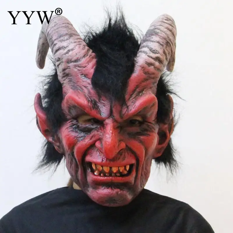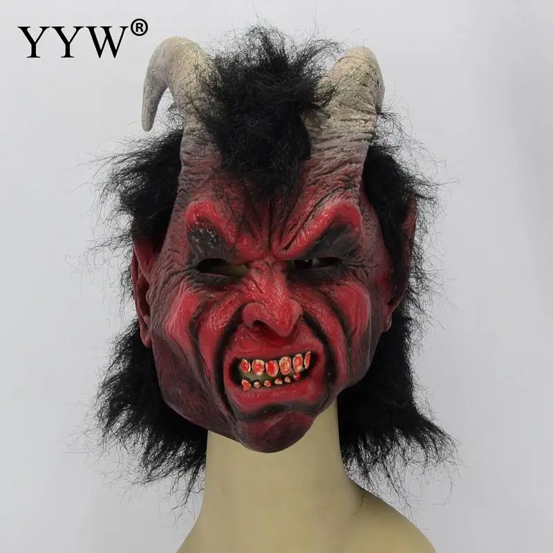Discount Halloween Deom Mask With Wig Props Scary Masks Realistic Latex Maske Masquerade Mascaras Halloween