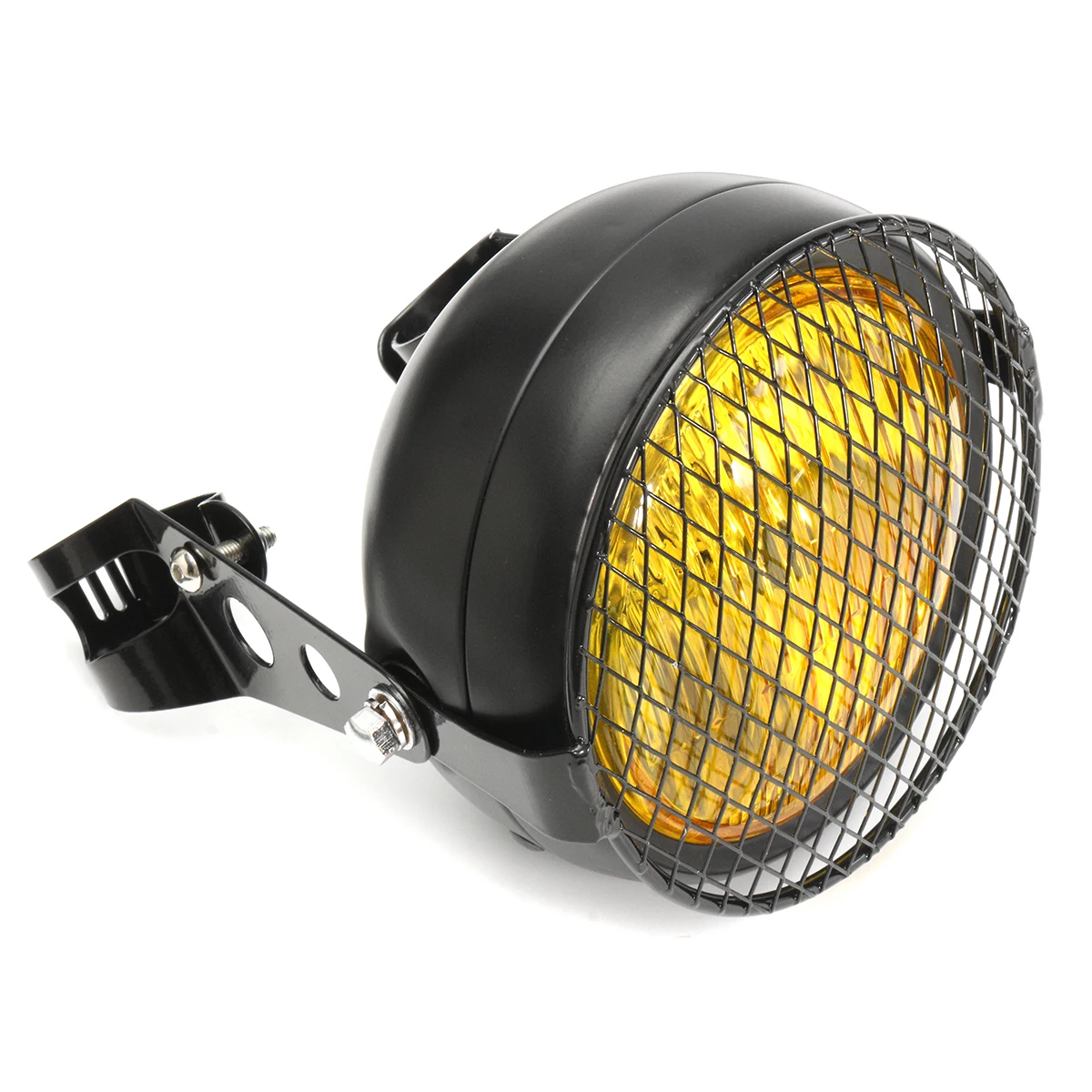 New Black Amber Grill Retro Vintage Bracket Mask Mount Headlight Cafe Racer Bobber Old School With Gril