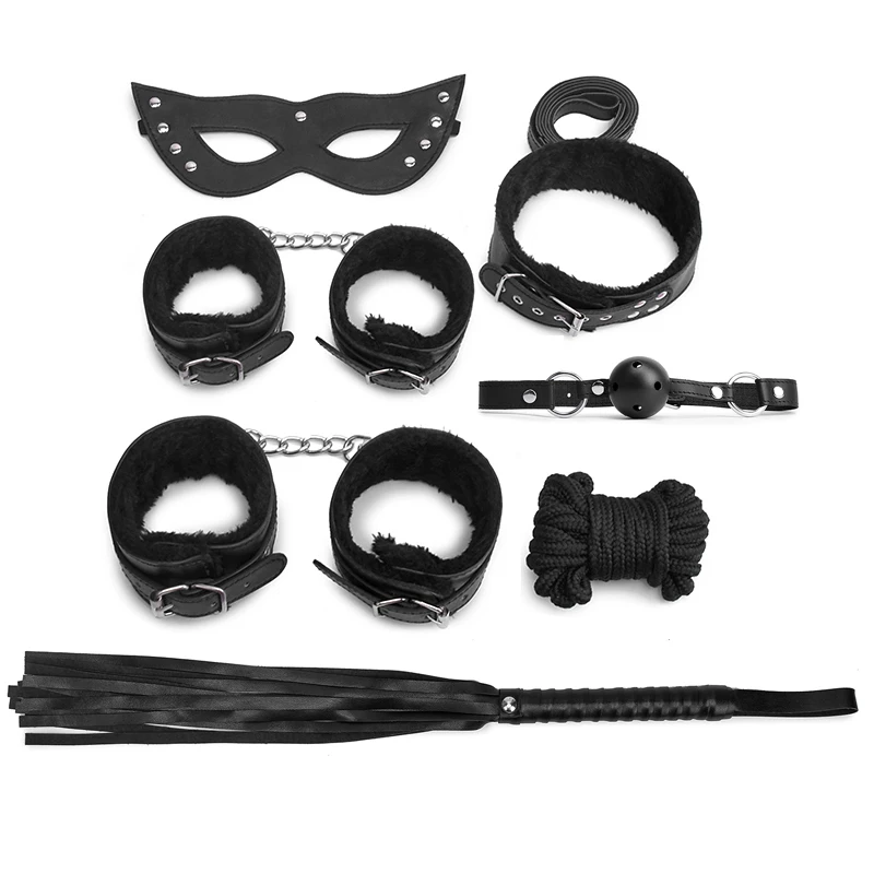Limited Leather Plush Sex Bdsm Bondage Set Whip Handcuff Ankle Cuff Bondage Rope Mouth Gag Collars Eye Mask