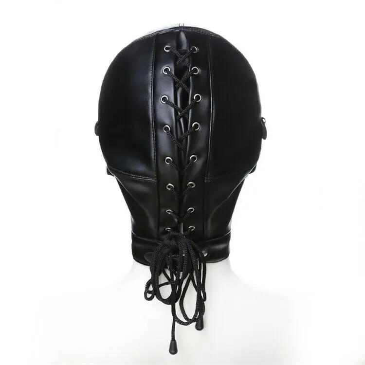 Best Soft Lace Up Faux Leather Bondage Hood Harness Mask Mouth Gag Full Head SM Stormtrooper Slipknot Co