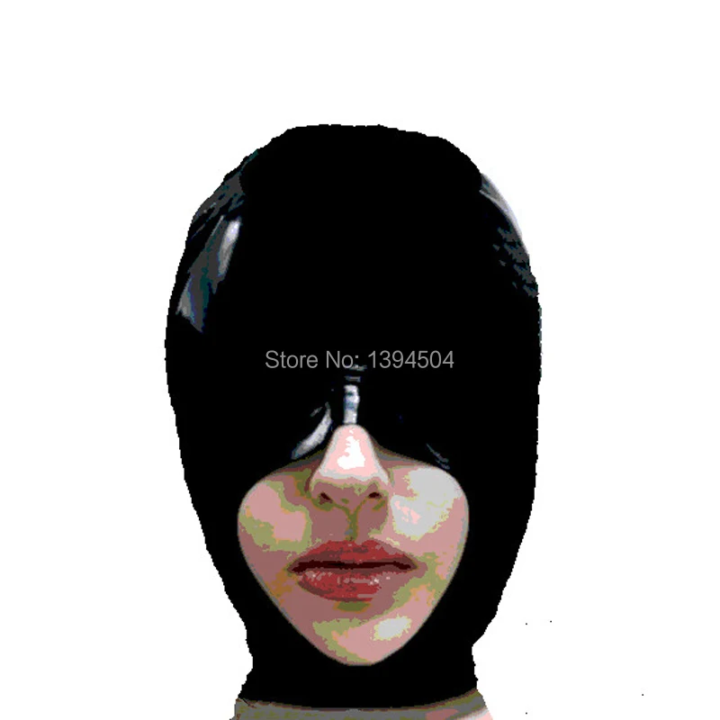 • Free Shipping Sexy Latex Hoods Adult Costume Zentai Natural Rubber Mask with Eyepatch S-LM072