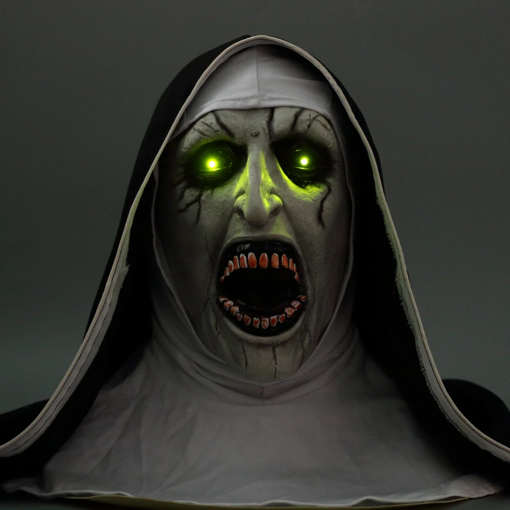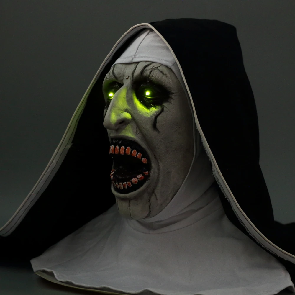 » Free Shipping The Nun Mask Horror Mask With Scary Voice With Led light Cosplay Valak Latex Masks With Headscarf H