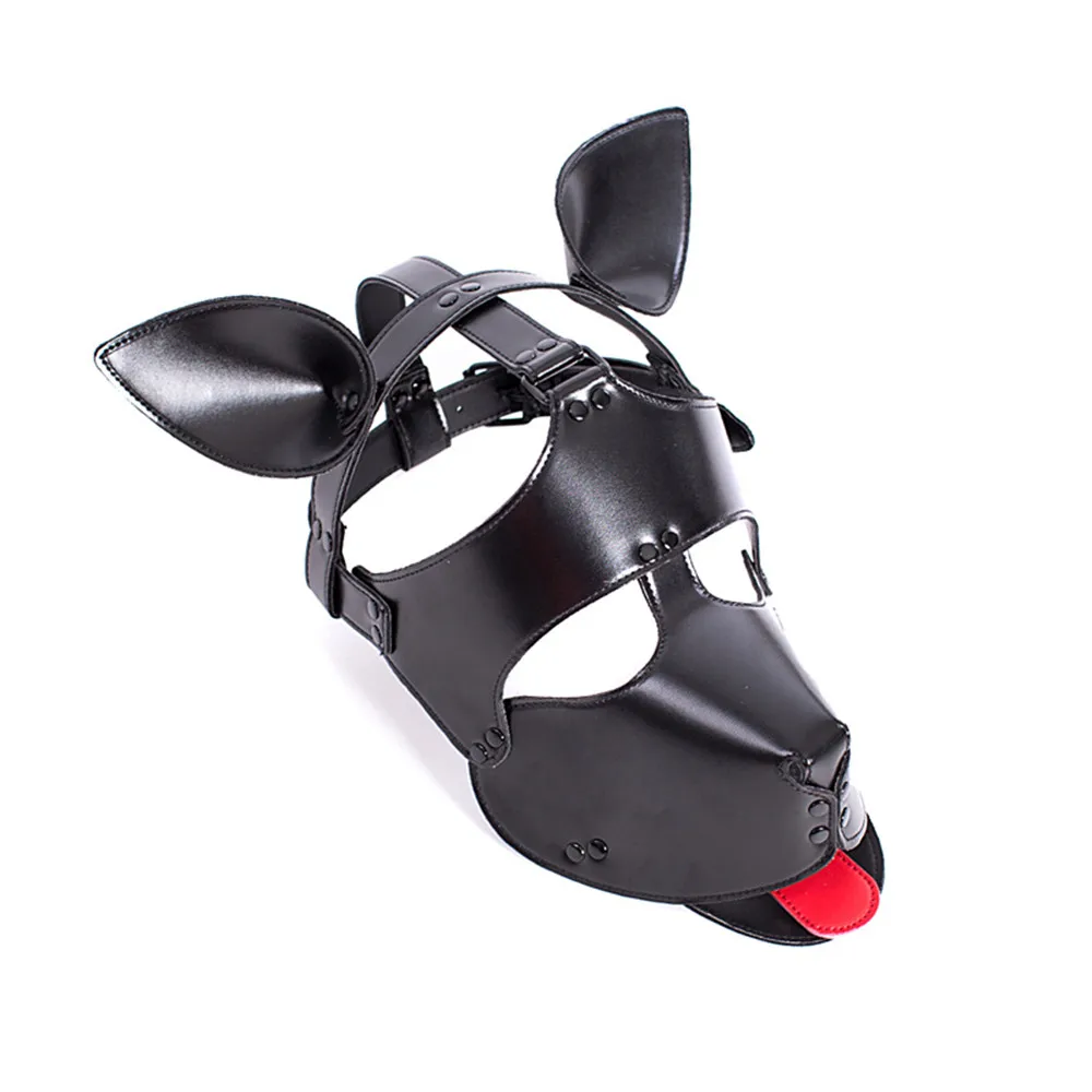 Hot Product Leather Puppy Costume Play Dog Cosplay Mask With Ears Tongue Fetish Sex Pet Hood Role Accessories S