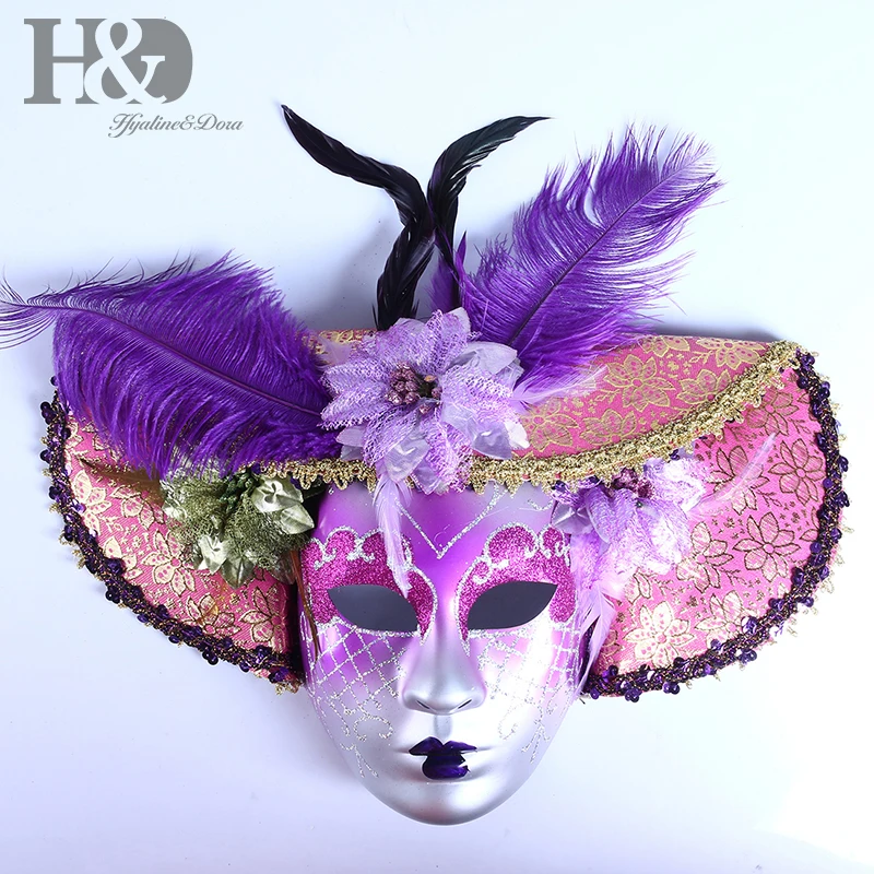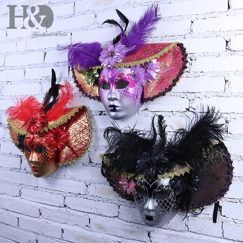 Get H&D 3 Colors Full Face Masquerade Venetian Mask Mardi Gras Dance Costume Hat Resin Mask Aristocrati
