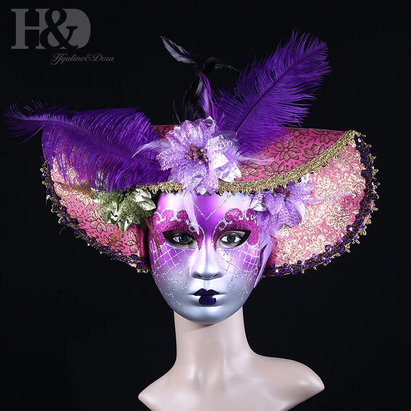 Free Shipping H&D 3 Colors Full Face Masquerade Venetian Mask Mardi Gras Dance Costume Hat Resin Mask Aristocrati