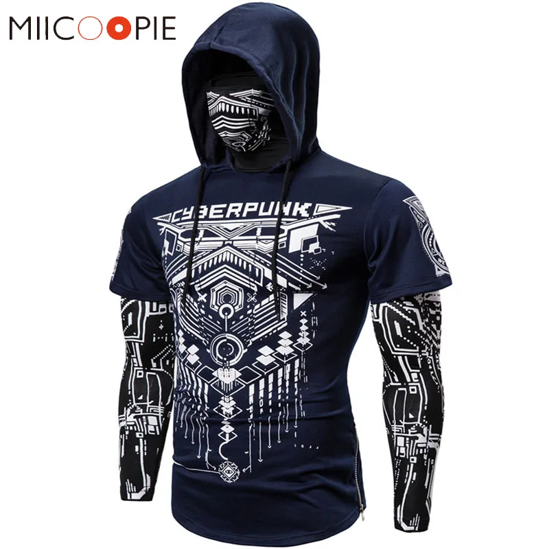 » Hot Product Mens Skull Mask Hoodies Sweatshirt Fake Two Pieces Men Punk Jogging Homme Pullover Elastic Streetwe