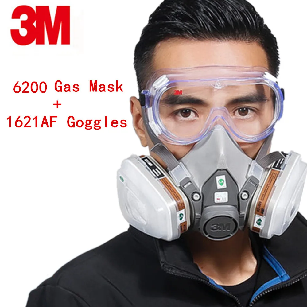 Limited 3M 6200+1621AF 8IN1Gas Mask 6001Respirator Set Mask with Goggles Anti-particulate Filters Anti-Dust