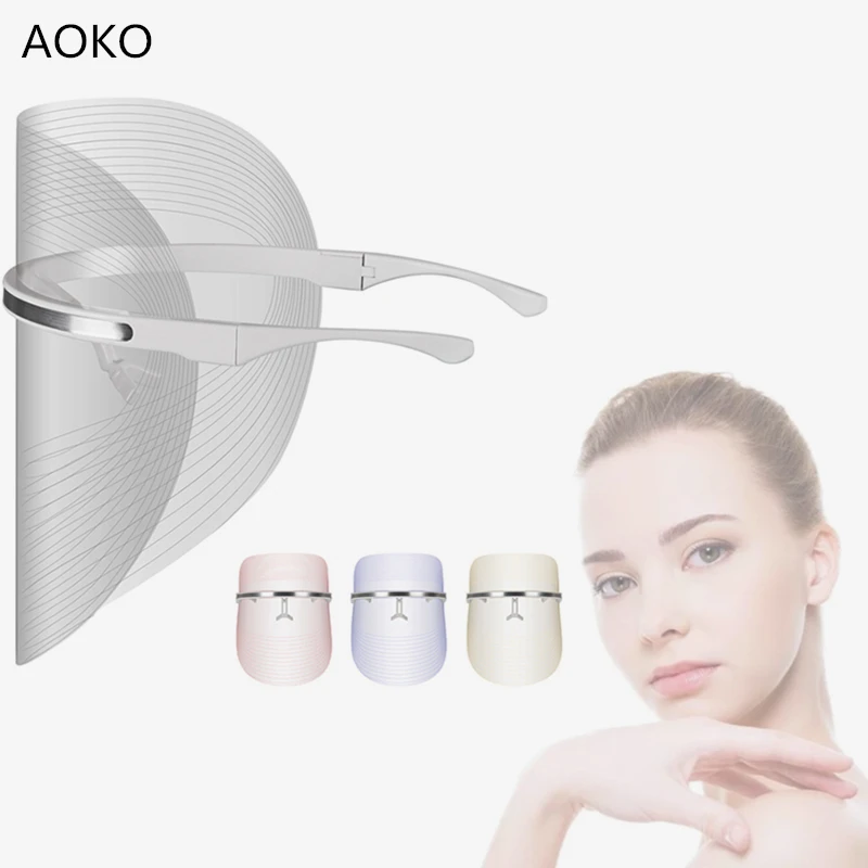 New AOKO 2019 New 3 Color LED Photon Therapy Facial Mask Anti Acne Remove Wrinkle Skin Rejuvenation Fac