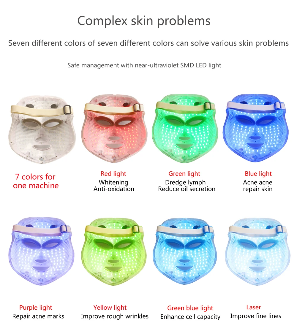 New 7 Colors Light Therapy Photon Led Face Facial Mask Korea Skin Care Therapy Tools