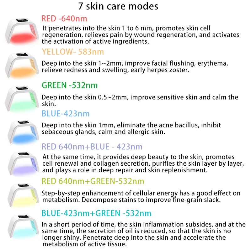 Special 7 Colors PDT Led Light Facial Mask Therapy Beauty Whitening Skin Acne Remover Anti-wrinkle Photothe