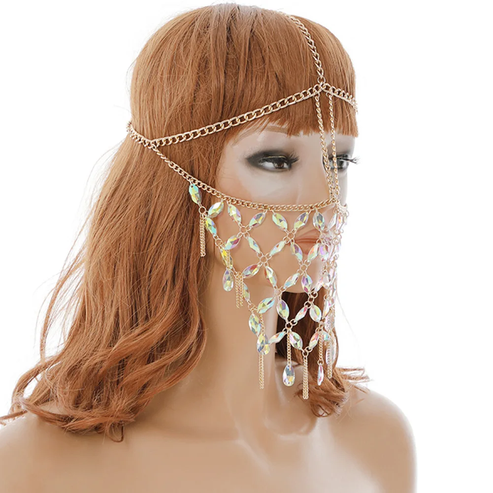 Home » best seller , mask , mask corona » Get Handmade Tassel Rhinestone Head Chain Hair Jewelry Bohemian Hollow Out Crystal Fringe Mask Party Co